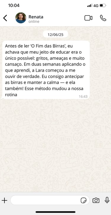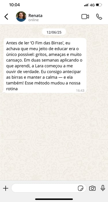 Viver em estado de alerta, esperando o próximo surto a qualquer momento, é exaustivo. Você merece ter um lar onde o respeito e a harmonia prevaleçam. O método 'O Fim das Birras' foi desenhado para mães reais, que não têm tempo a perder com teorias complicadas. São técnicas práticas e empáticas que desarmam o comportamento difícil na hora, permitindo que você volte a aproveitar os momentos felizes com seu filho, livre de qualquer sentimento de culpa.